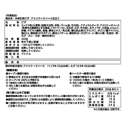 <本格石窯海老ピザ>