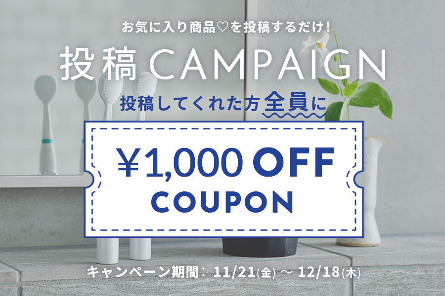 投稿してくれた方全員に、次回以降のお買物で利用できる1,000円(税込)クーポンをプレゼント。